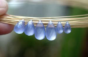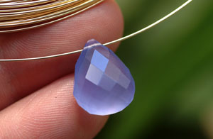 This 11.21ct African Blue Chalcedony Briolette is going to make an eye catching pendant for someone. It measures 13.5mm across, 17mm in height and 8.5mm deep.